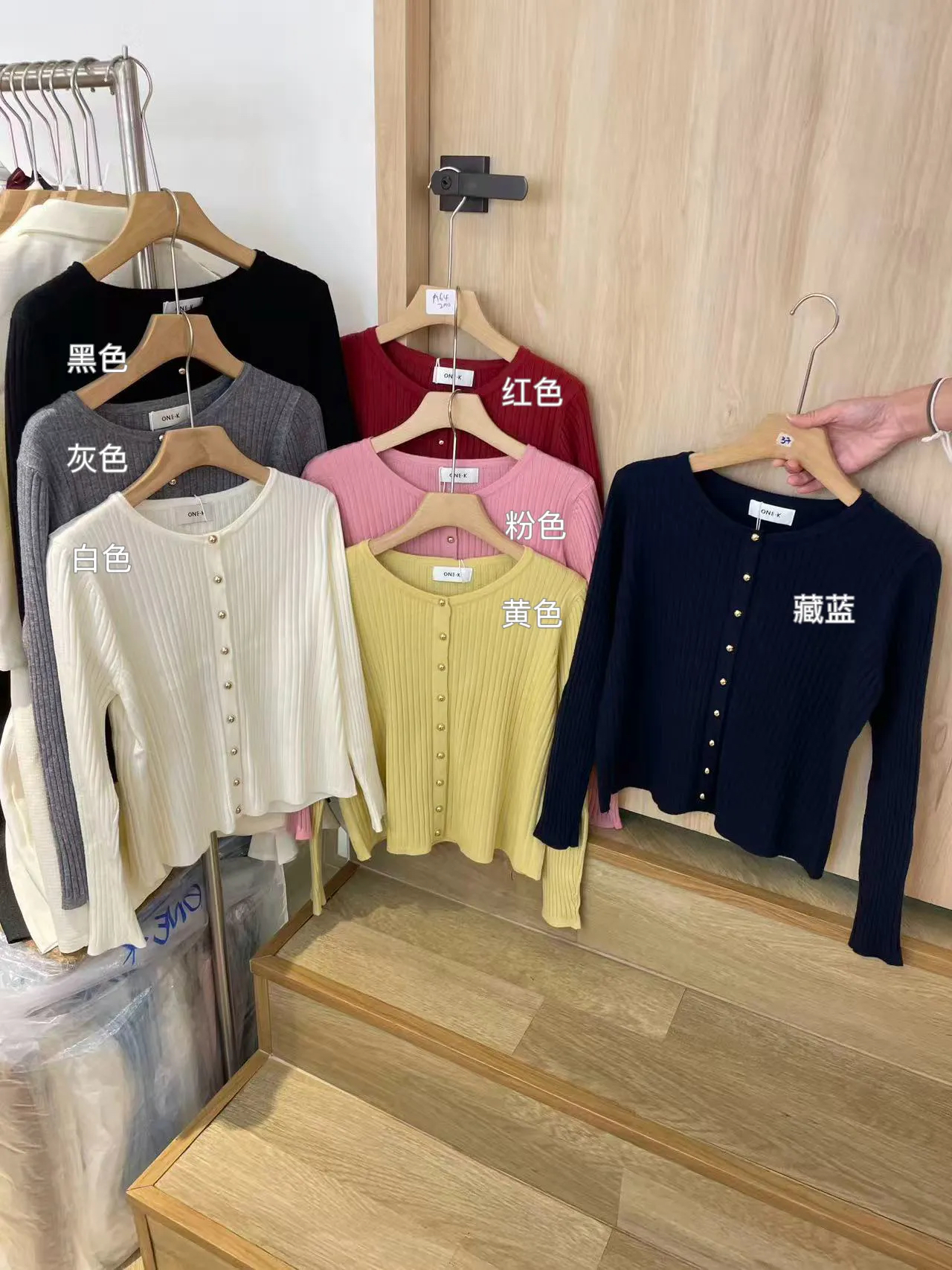 OK12 ONE K ~ 高级感金扣压纹长袖
